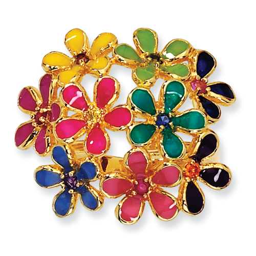 Gold-plated Sterling Silver Enameled CZ Flowers Ring