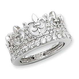 Sterling Silver Fleur-de-lis Crown CZ Ring