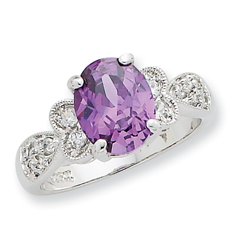 Sterling Silver Purple and Clear CZ Ring