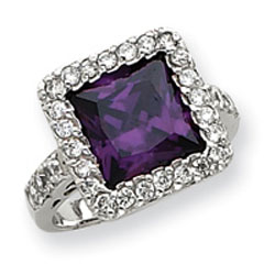 Sterling Silver Purple Square CZ Ring