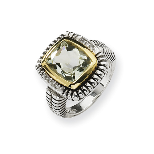 Sterling Silver w/14k 6.05Green Amethyst & .03ct. Diamond Ring