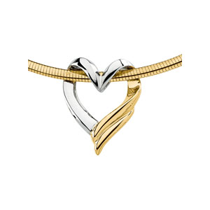 14K White Yellow Gold Two Tone Heart Chain Slide
