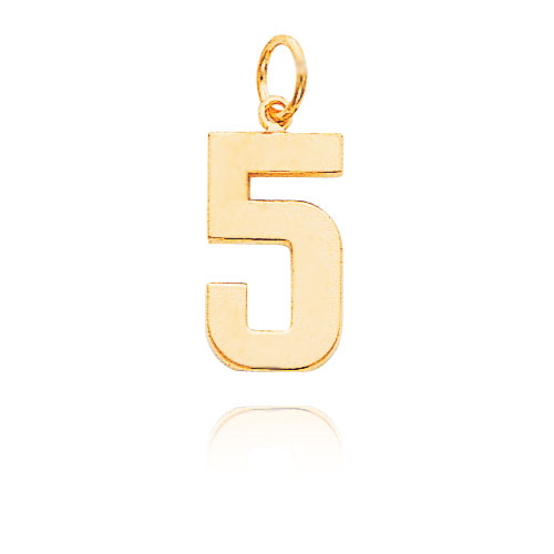 14K Gold Large Polished Number 5 Charm
