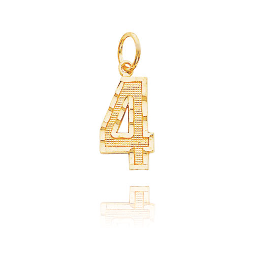 14K Gold Medium Diamond-Cut Number 4 Charm