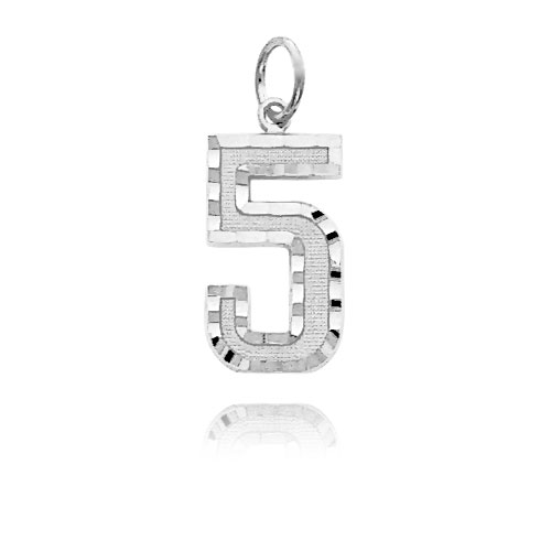 14K White Gold Large Diamond-Cut Number 5 Charm