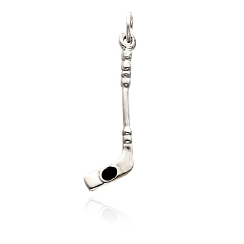 Surprise your favorite hockey star with this 3D charm. 14K White Gold is used to craft this solid stick charm and features a black enameled puck detail at the bottom of the stick. The charm hangs from a thin, polished bail.