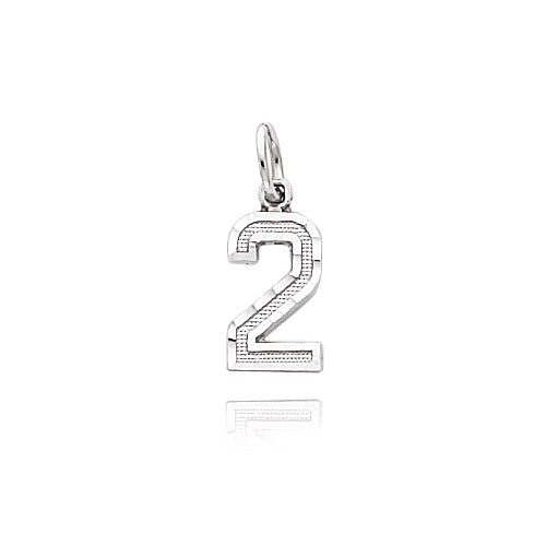 14K White Gold Small Diamond-Cut Number 2 Charm