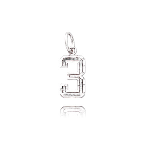14K White Gold Small Diamond-Cut Number 3 Charm