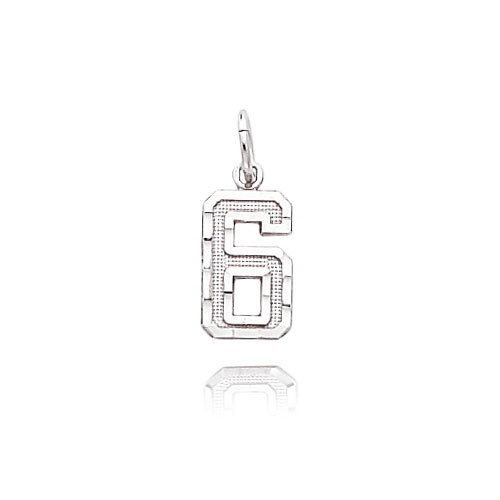 14K White Gold Small Diamond-Cut Number 6 Charm