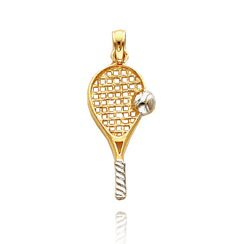 14K Yellow Gold & Rhodium Tennis Racquet & Ball Charm