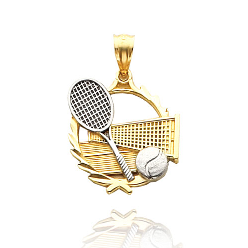 14K Yellow Gold & Rhodium Tennis Theme Pendant