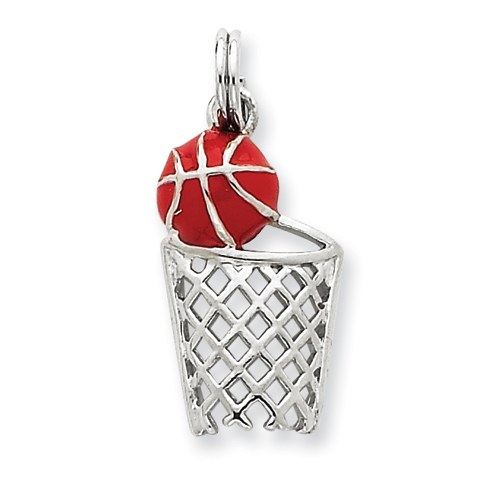 Picture of Sterling Silver Enamel Basketball & Hoop Charm