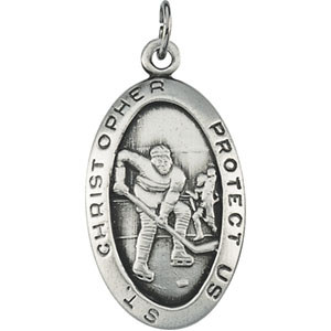 Sterling Silver St. Christopher Hockey Pendant With 24 Inch Chain