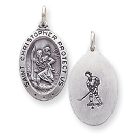 Sterling Silver St. Christopher Medal, Hockey Charm