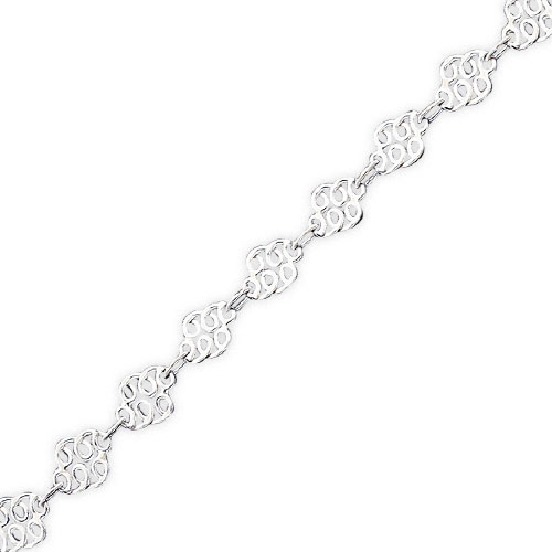 Add variation and fun to any collection! Swirled design consists of dozens of loops, possibly one repeatedly looped on itself to form each link. Sterling Silver anklet features lovely links with beautiful form and pattern. Very interesting!