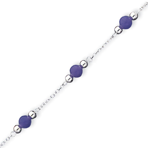 Sterling Silver 9'' Polished Lavender Jade Anklet