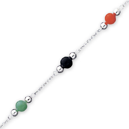 Sterling Silver 9'' Polished Multi-Color Jade Anklet