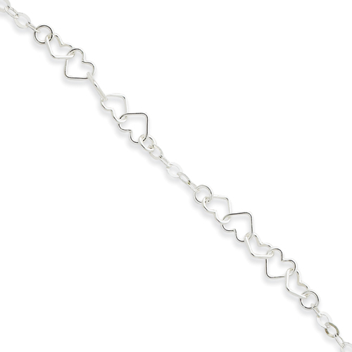 Picture of Sterling Silver 9inch Polished Fancy Heart Link Anklet