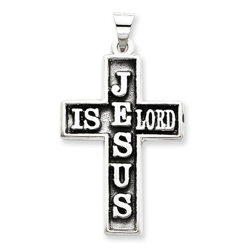 Sterling Silver Antiqued Jesus Is Lord Cross Pendant