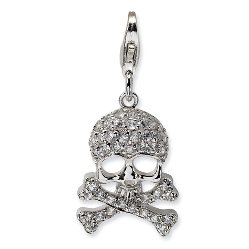Sterling Silver CZ Skull and Cross Bones w/Lobster Clasp Charm