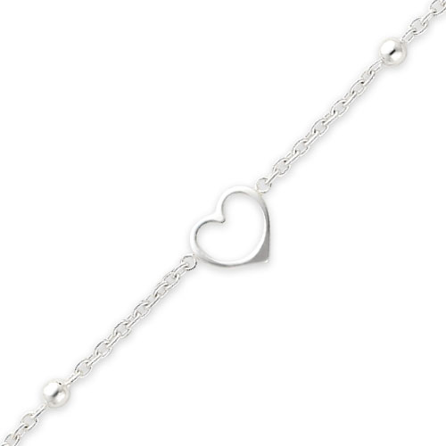 A very pretty piece! Center of piece features adorable open heart cut out, as polished beads are spaced along link strand. Sterling Silver is crafted into beautiful heart anklet. Anklet also features lobster clasp for secure, easy wear.