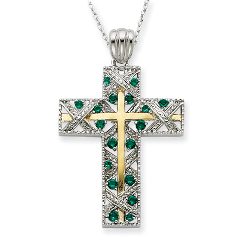 Sterling Silver & Gold-plated CZ Planted In Faith Cross 18in Necklace