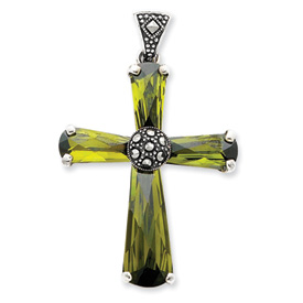 Sterling Silver Green Cubic Zirconia & Marcasite Cross Pendant