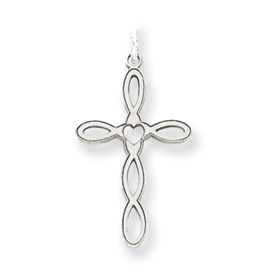 Sterling Silver Green Cubic Zirconia & Marcasite Cross Pendant