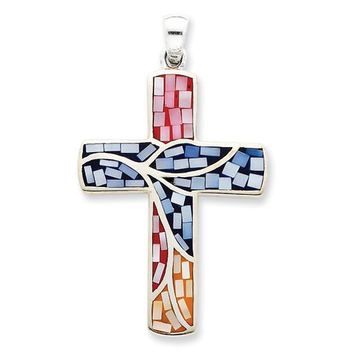 Sterling Silver Mulit-colored Shell Cross Pendant
