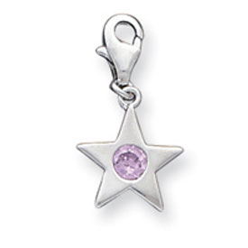 Sterling Silver October CZ Birthstone Star Charm