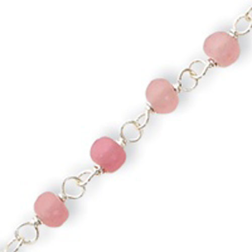 Sterling Silver Pink Bead With Heart Anklet