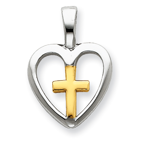 Sterling Silver Vermeil Cross Heart Pendant