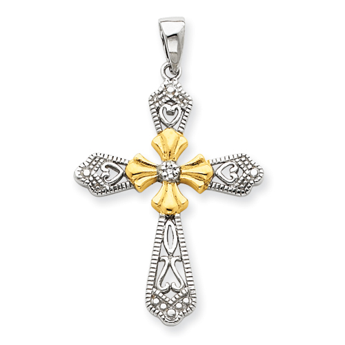 Sterling Silver Vermeil CZ Cross Pendant