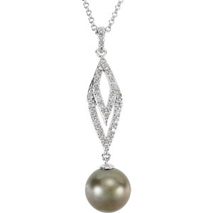 14kt White NECKLACE Complete with Stone 18.00 INCH ROUND 09.00 MM PEARL Polished 3/4CTW DIA AND PEARL NECKLACE