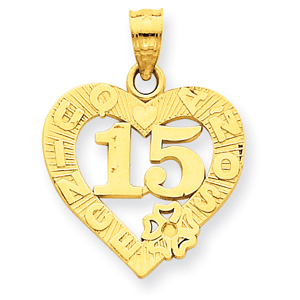 14K Gold 15 In Quince Anos Heart Frame Pendant