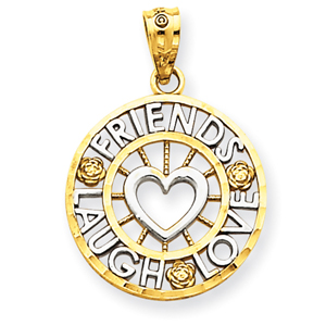 14K Gold And Rhodium Friends, Laugh, Love Circle Pendant