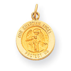 14K Gold Guardian Angel Medal Charm