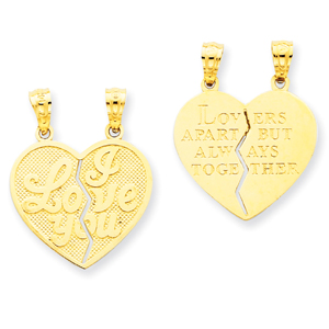 14K Gold I Love You Heart Break-A-Part Reversible Pendant