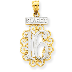 14K Gold & Rhodium Filigree Sweet 16 Pendant