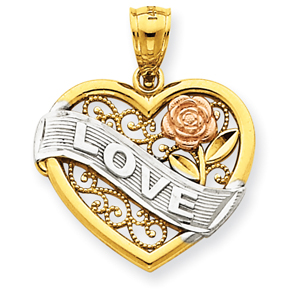 14K Two-Tone Gold And Rhodium Love Heart Pendant