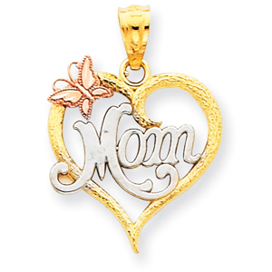 Picture of 14K Two-Tone Gold And Rhodium Mom Heart Pendant