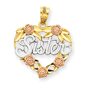 14K Two-Tone Gold And Rhodium Sister Heart Pendant