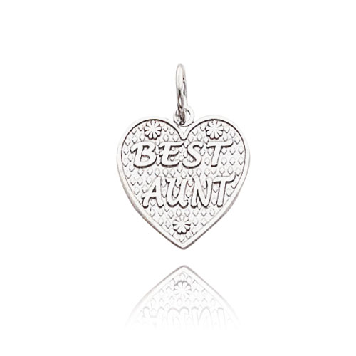 Show a special Aunt how much she's appreciated with this beautiful charm. 14K White Gold is used to craft this textured heart that features the sentiment "Best Aunt" with flower-like details at the front. The charm is polished for maximum shine and hangs from a thin gold bail.