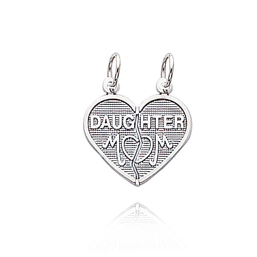 14K White Gold "Daughter" & "Mom" Break-Apart Heart Charm