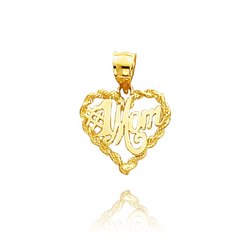 14K Yellow Gold "#1 Mom" Rope Heart Charm