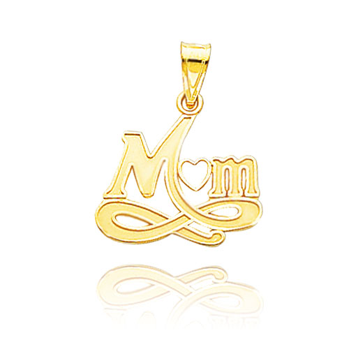 14K Yellow Gold Large "Mom" Pendant