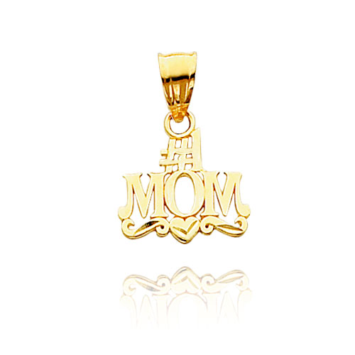 14K Yellow Gold Polished & Diamond-Cut "#1 Mom" Pendant