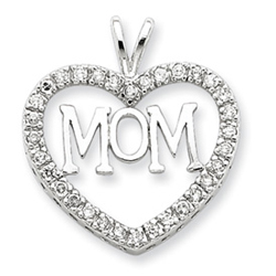 Picture of Sterling Silver CZ Heart MOM Pendant