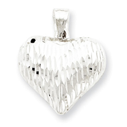 Sterling Silver Diamond-Cut Puffed Heart Pendant