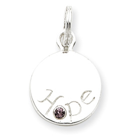 Picture of Sterling Silver Hope With Pink CZ Disc Charm